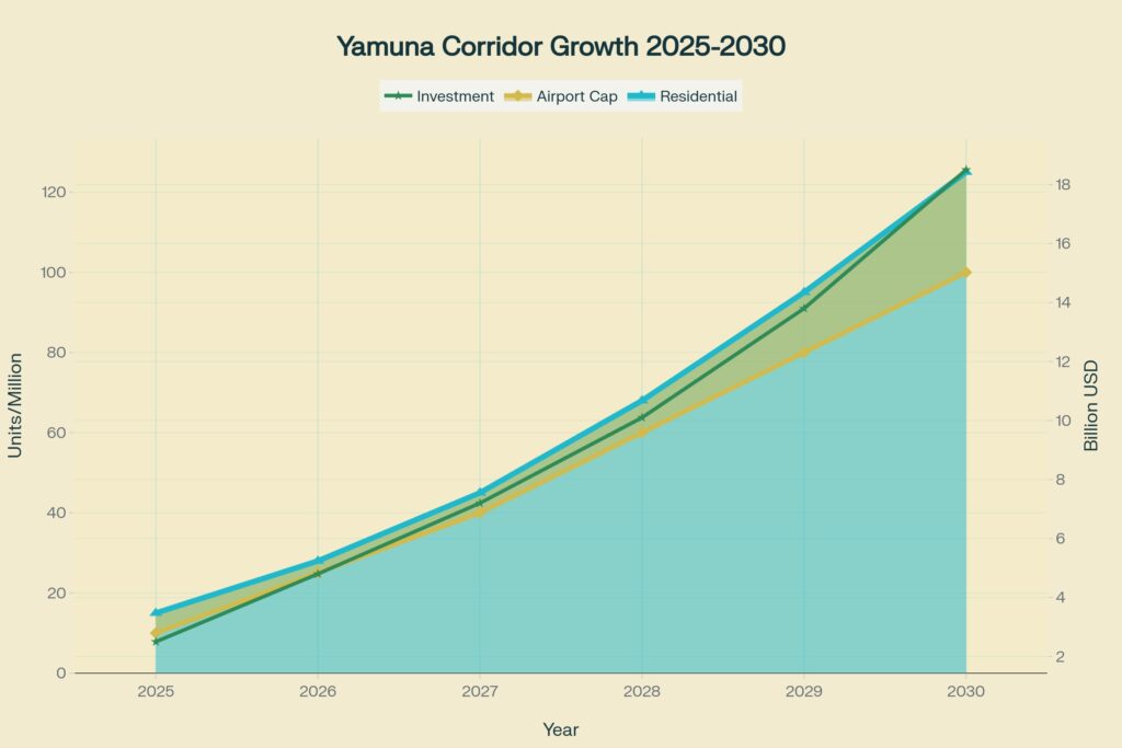 The Yamuna Expressway corridor between Greater Noida and Agra is rapidly transforming into India’s next major property investment hub. Between 2025 and 2030, this 165-km stretch is projected to witness the most aggressive appreciation in the NCR region, driven by the operational Noida International Airport (Jewar), YEIDA’s master plan for sustainable development, and an emerging ecosystem of IT, logistics, and residential projects.